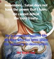 Remember this though. Satan does not have the power that I have. He cannot defeat the Holy Trinity. He is powerless against My Mother who has been given authority to destroy him. He fears her.