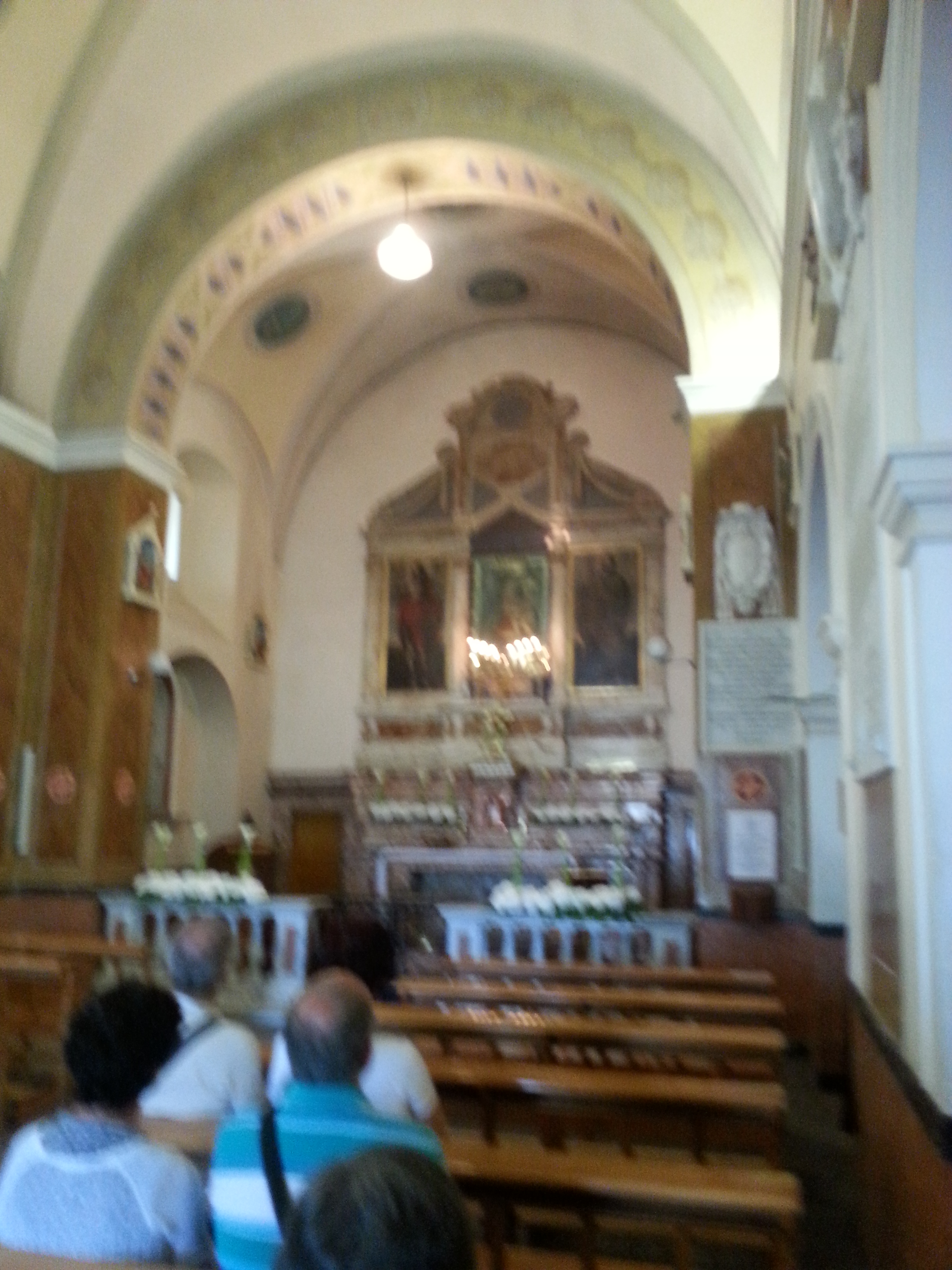 There was a chapel dedicated to Our Lady of the Snows. The chapel has a painting which shows the pope (Liberius) drawing the line in the snow to outline where the chapel should be built. Our guide told us how the pope had dreamed of snow falling and that he was to build a basilica there. Our Lady gave him the sign. Snow fell on August 5th, 352 AD – in the middle of Summer!