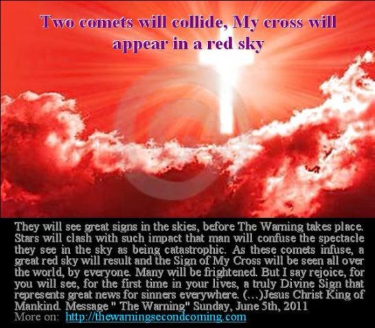 My Cross will be the proof of My manifestation of My Divine Mercy promised to mankind for so long. It will be seen in the skies all over the world.