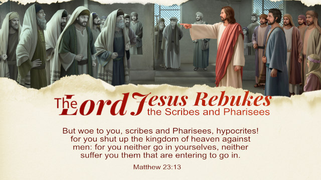 13“Woe to you, scribes and Pharisees, you hypocrites.You lock the kingdom of heaven before human beings.You do not enter yourselves, nor do you allow entrance to those trying to enter.