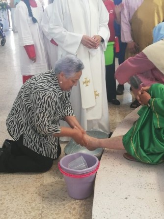 Finally, we come to the new image seen at the top of the article, showing just how far some parishes have taken these substitutions and just how far the practice has now deviated from the original action which Jesus performed.