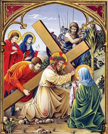 When I carried My Cross, I could not do this on My own. It was so heavy that I could only take one step at a time and walk very slowly. My Body was torn in many places and because of the blood loss I fainted many times, so weak was I. I was blinded in one eye and the thorns on My Head meant that the Blood, which poured from My Wounds, had to be continually wiped away by those who walked alongside Me. Otherwise, I would never have been able to take another step forward.